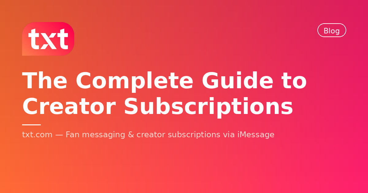 A creator subscription is a recurring payment that fans make in exchange for ongoing access to a creator. That access can take many forms — exclusive content, community membership, direct messaging, or in the case of txt.com, direct iMessage access to the creator's phone number.
