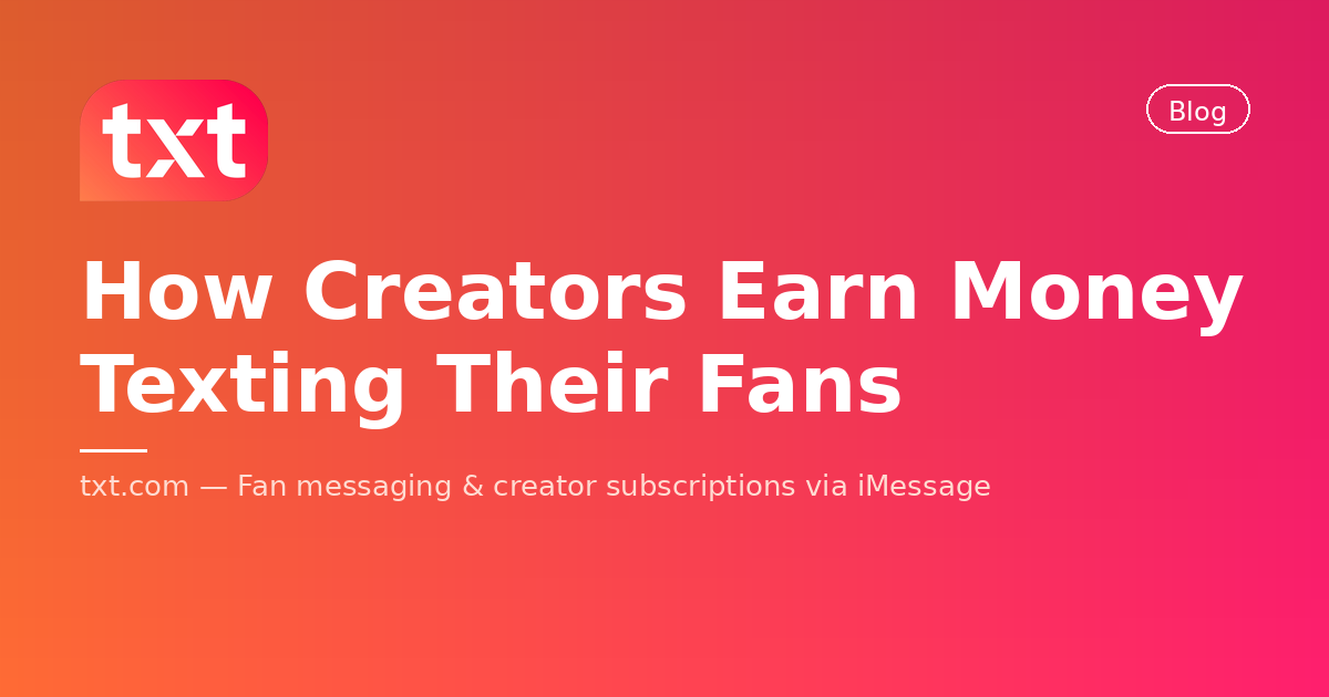 Learn how creators are earning money by texting their fans directly via iMessage on txt.com. Set your price, build real connections, and get paid today.